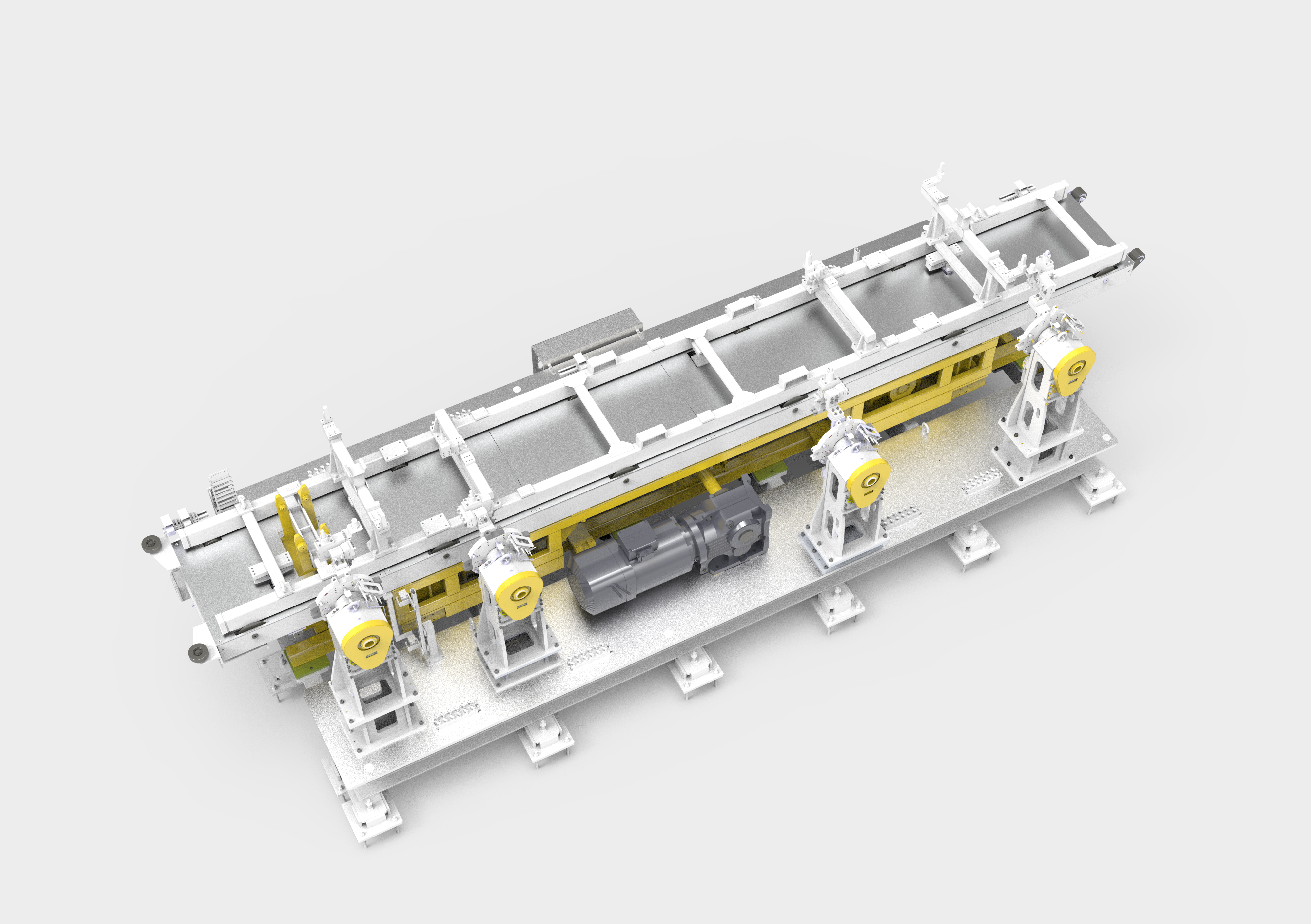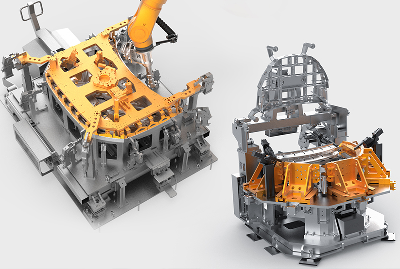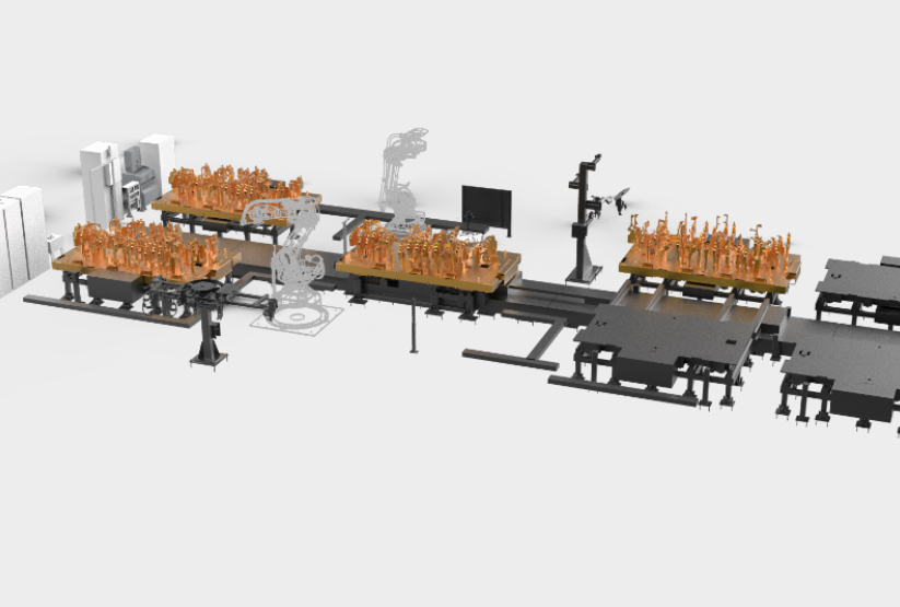 通過(guò)轉(zhuǎn)臺(tái)及夾具庫(kù)切換技術(shù),實(shí)現(xiàn)側(cè)圍線多車(chē)型混線生產(chǎn)。側(cè)圍線內(nèi)采用工業(yè)機(jī)器人,積放式輸送機(jī)等自動(dòng)化設(shè)備,實(shí)現(xiàn)焊接、涂膠、搬運(yùn)等全自動(dòng)化生產(chǎn)。