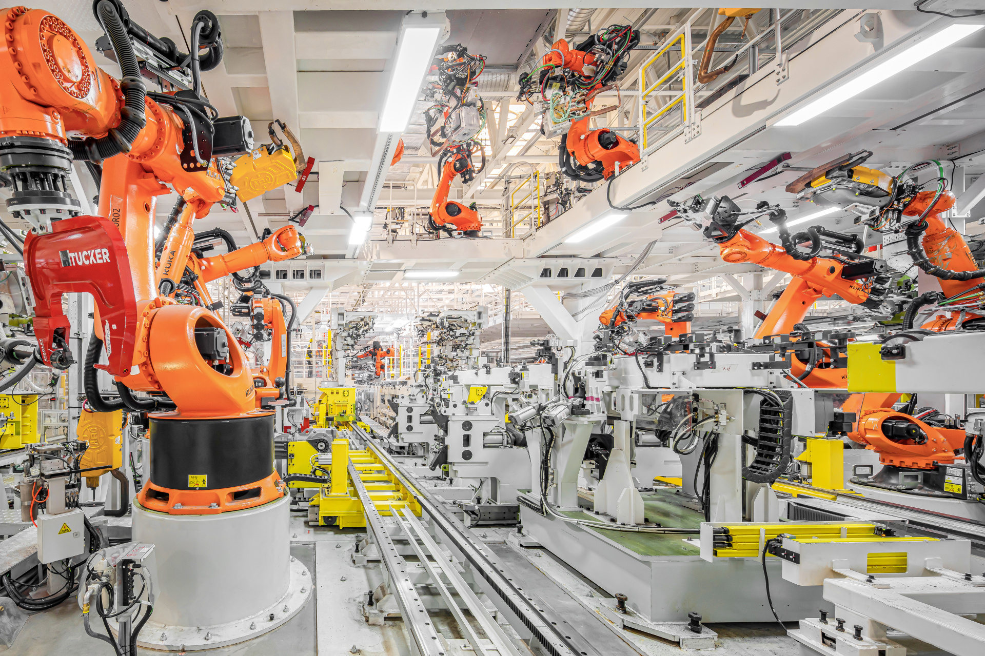 門(mén)蓋線自動(dòng)化解決方案,采用機(jī)器人滾邊、焊接、弧焊、搬運(yùn)、涂膠等工藝,實(shí)現(xiàn)門(mén)蓋自動(dòng)化生產(chǎn)。